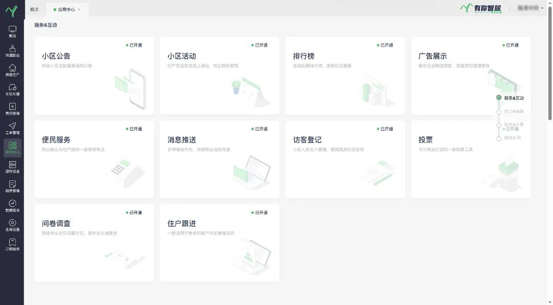 有你智居物业软件应用中心部分界面