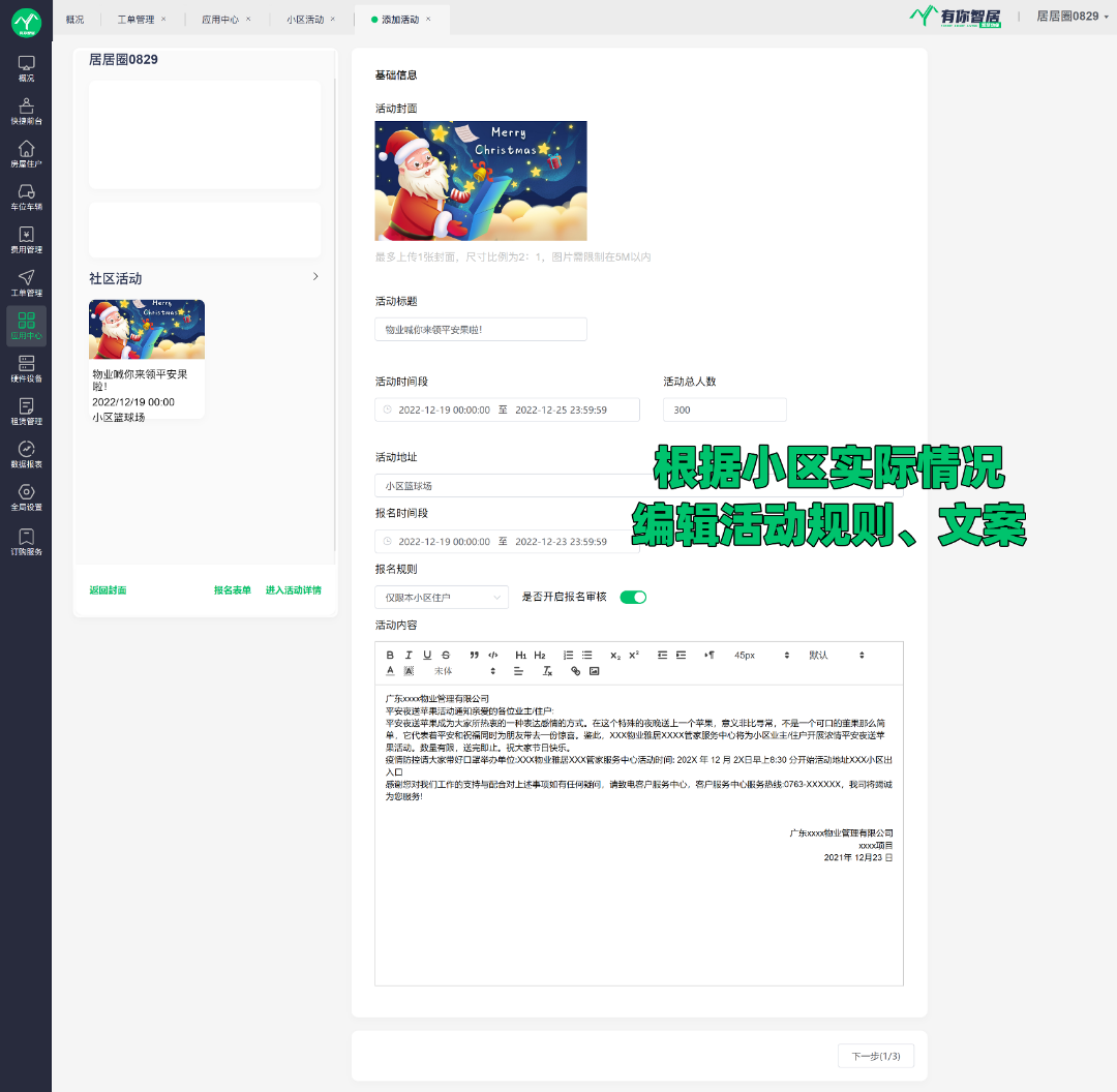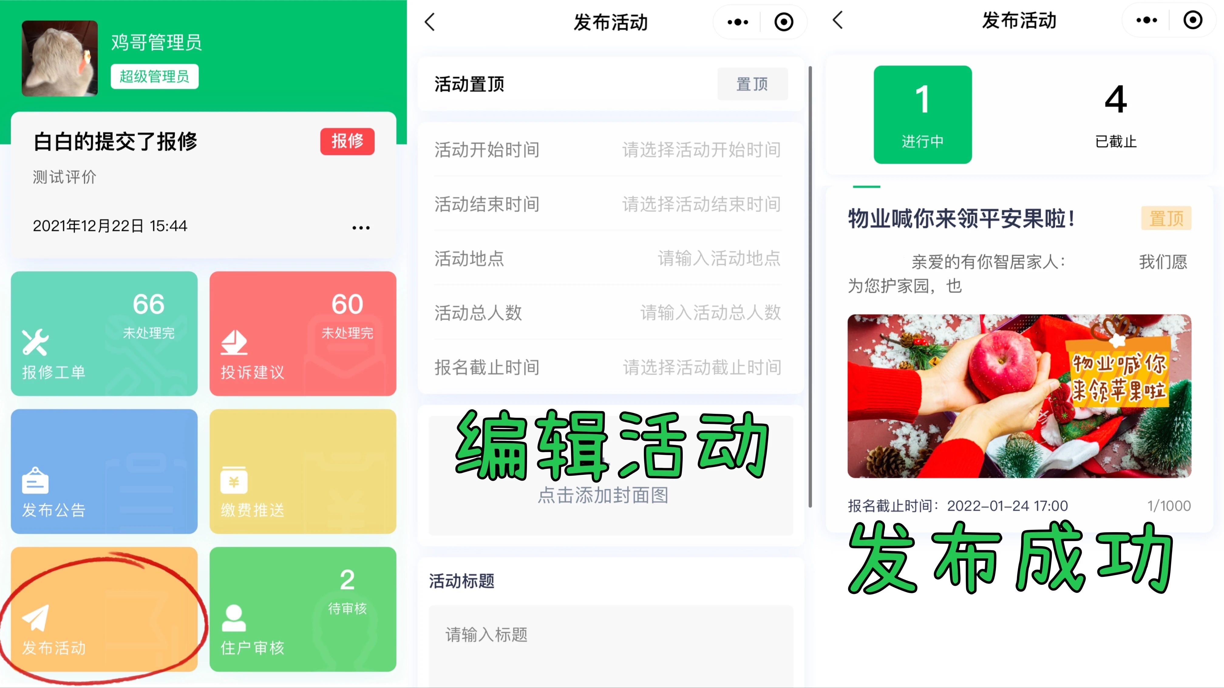 活动后,可以整理成一篇回顾,通过物业系统的【小区公告】功能,让每位业主都能回味那天的欢乐。