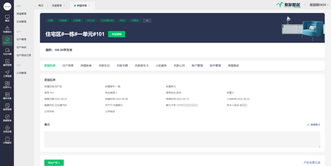 综上可看出房屋详情版块里存储的业主信息很多,这也大大提升了物业收集和处理社区内人、房、车、事、钱等信息的效率。