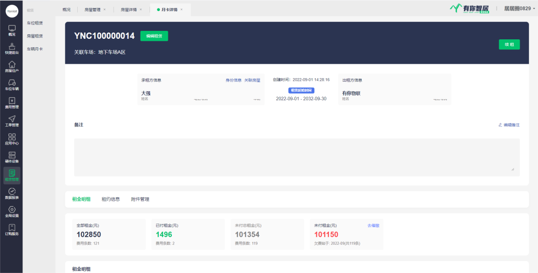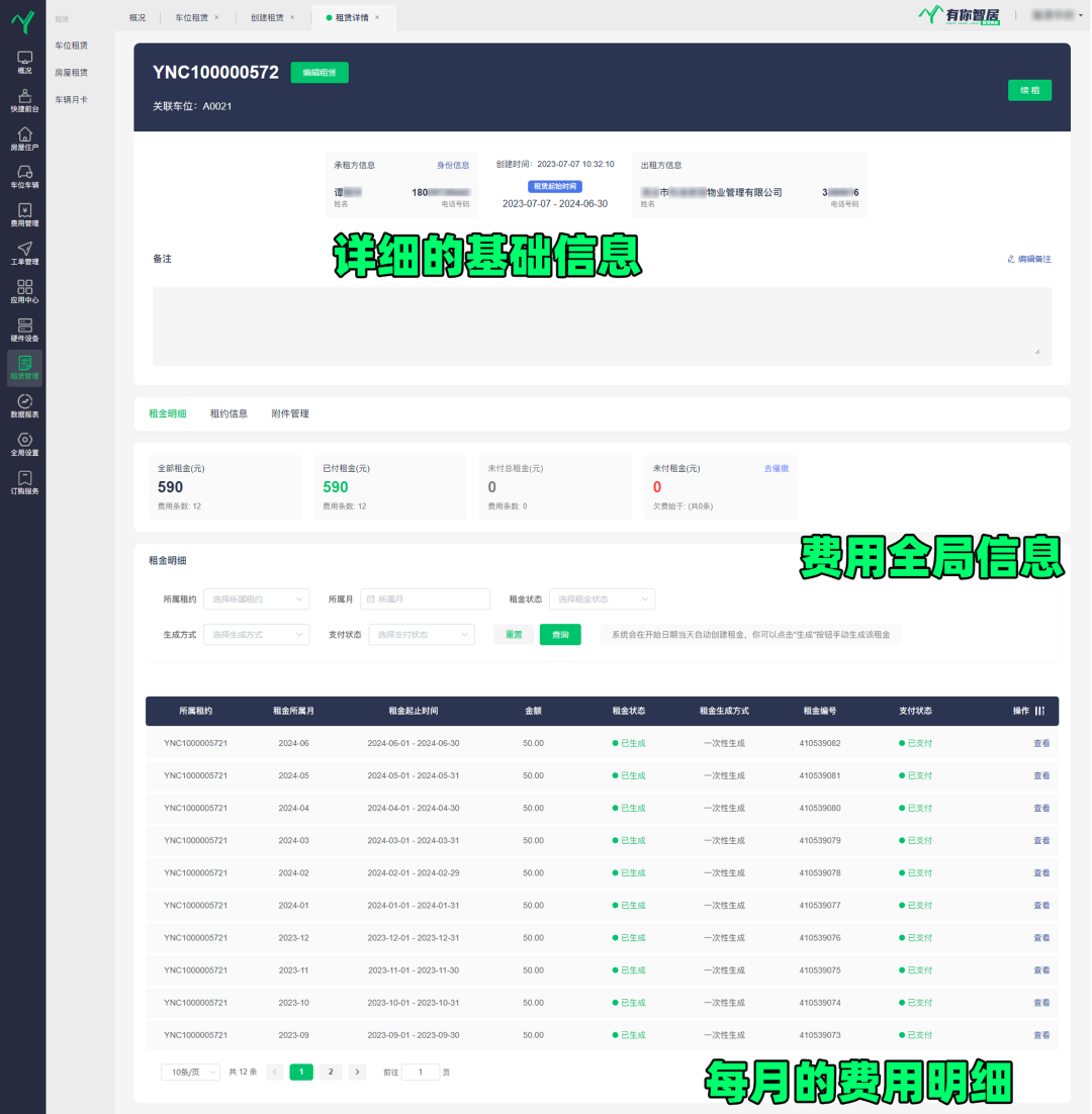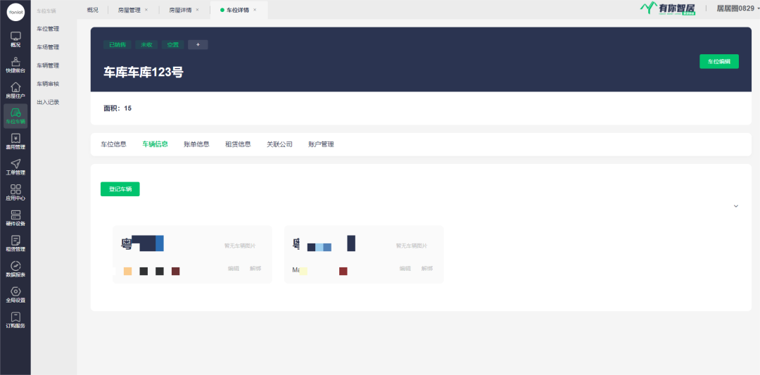 里面记录着车位信息、账单信息、租赁信息等。可迅速了解该房屋所属车辆信息。