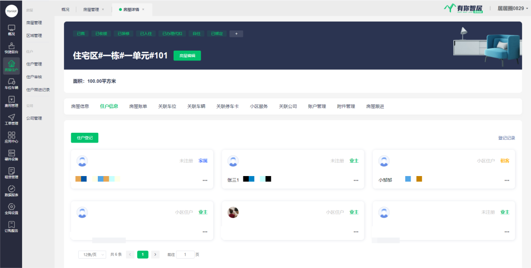 住户信息里登记该房屋的所有住户,及家属、租户...想要查看详情可以点击右上角的登记记录,这大大提高了物业联系业主的速度。