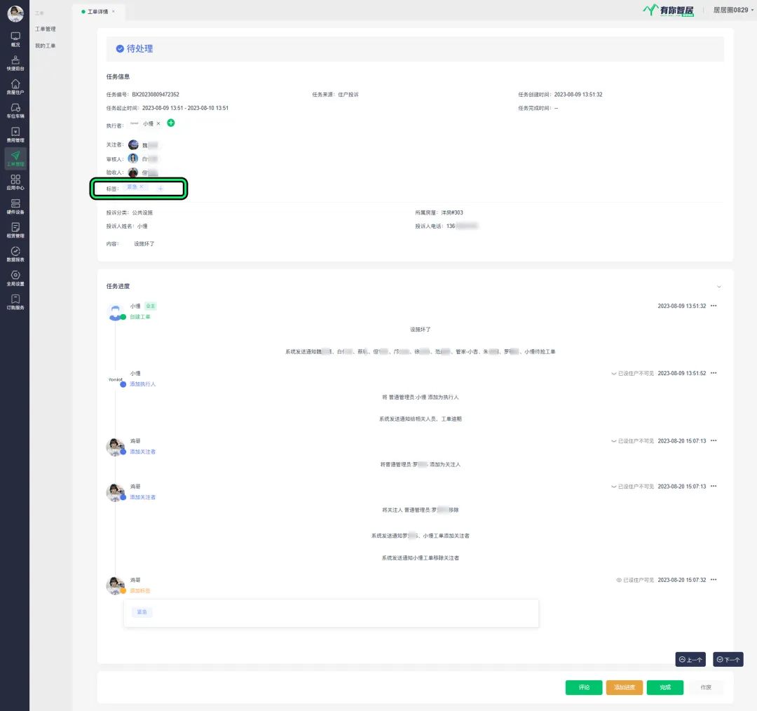 通过为工单设置标签,物业可以轻松分类、识别和跟踪不同类型的工单。