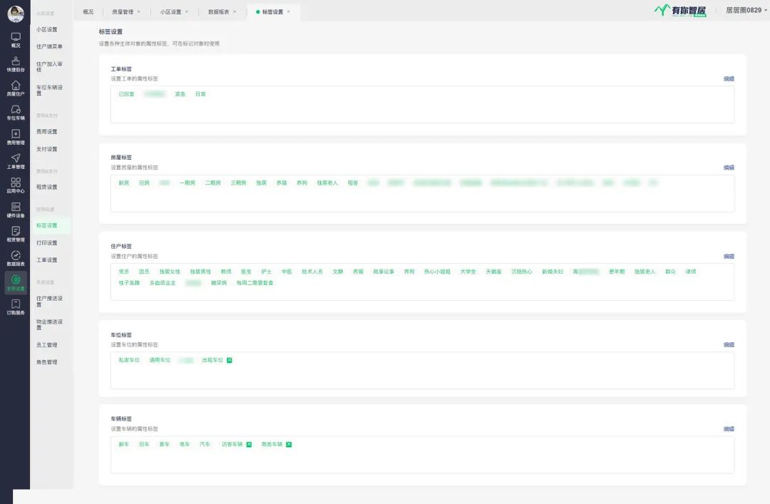 有你智居智慧物业管理系统的“标签设置”不仅提升了物业服务管理的精细度,也给予了物业管理员更大的灵活性和便利性。