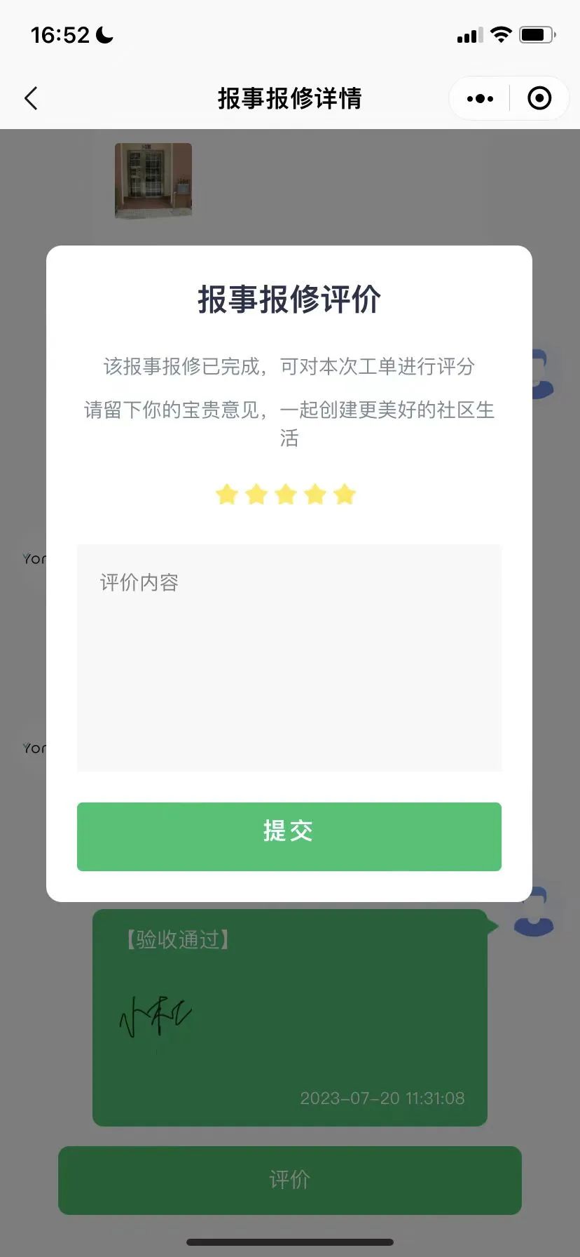 【有你智居】业主小程序-报事报修评价