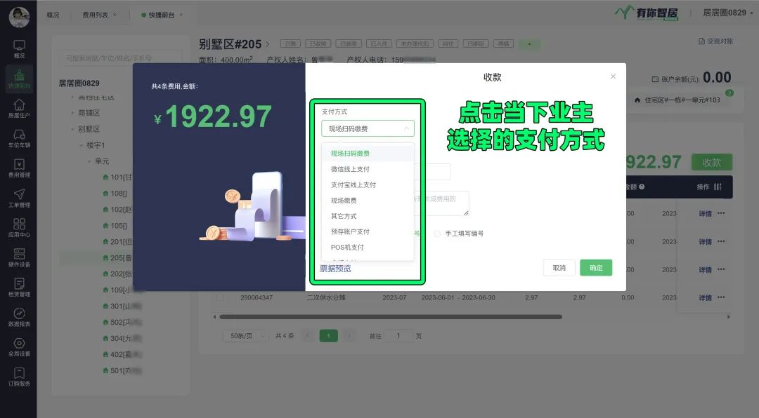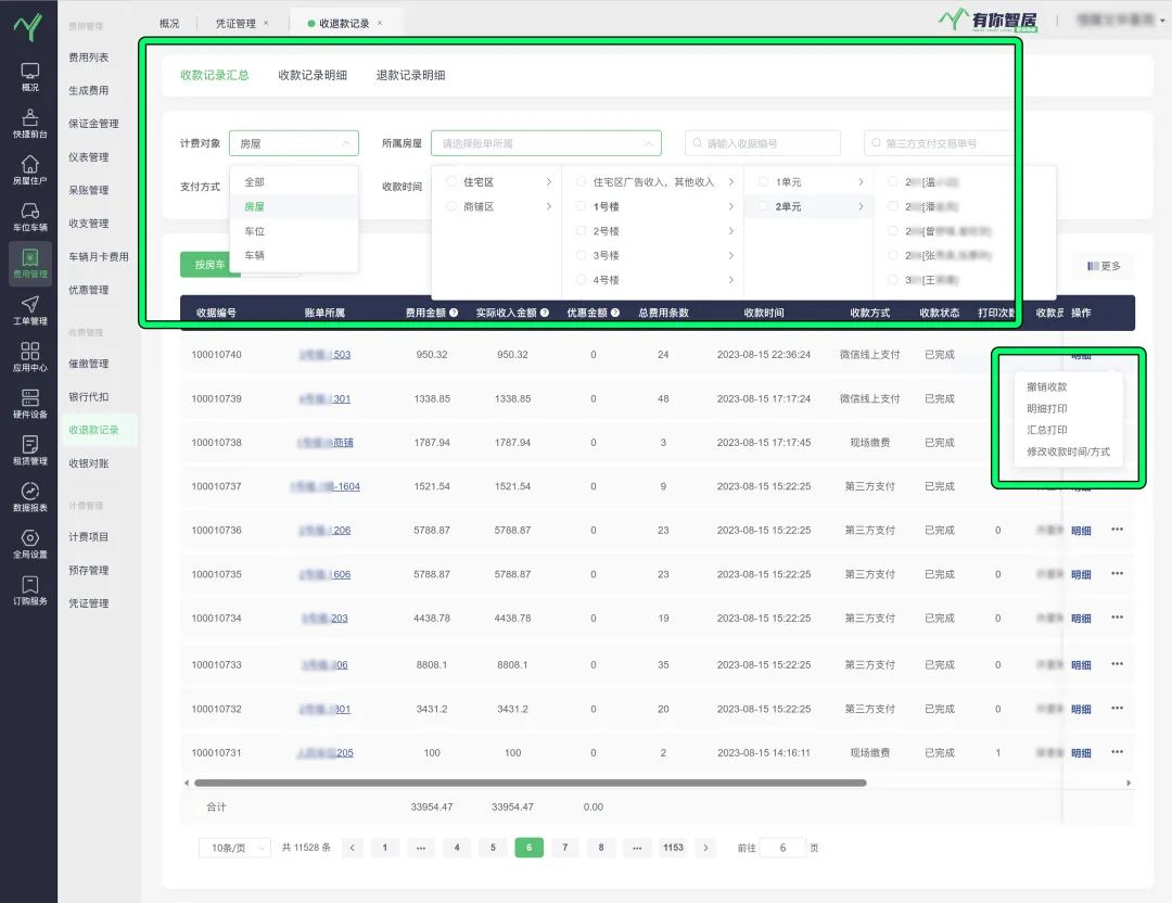在有你智居智慧物业系统的帮助下,物业团队能够对业主的每一笔费用进行实时跟踪、核实和管理,确保每一项收费都准确无误。
