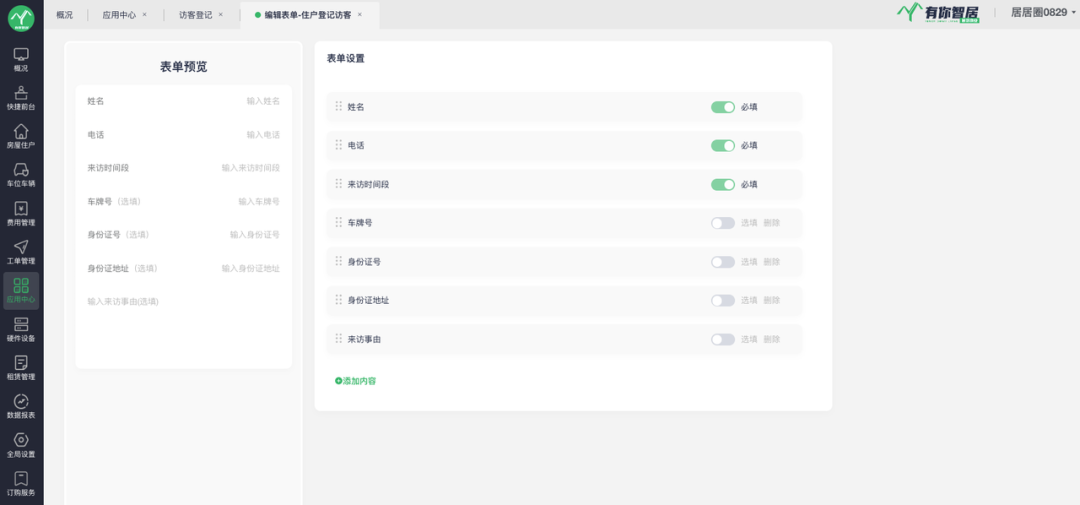 智慧物业管理系统后台可编辑表单必填项和选填项