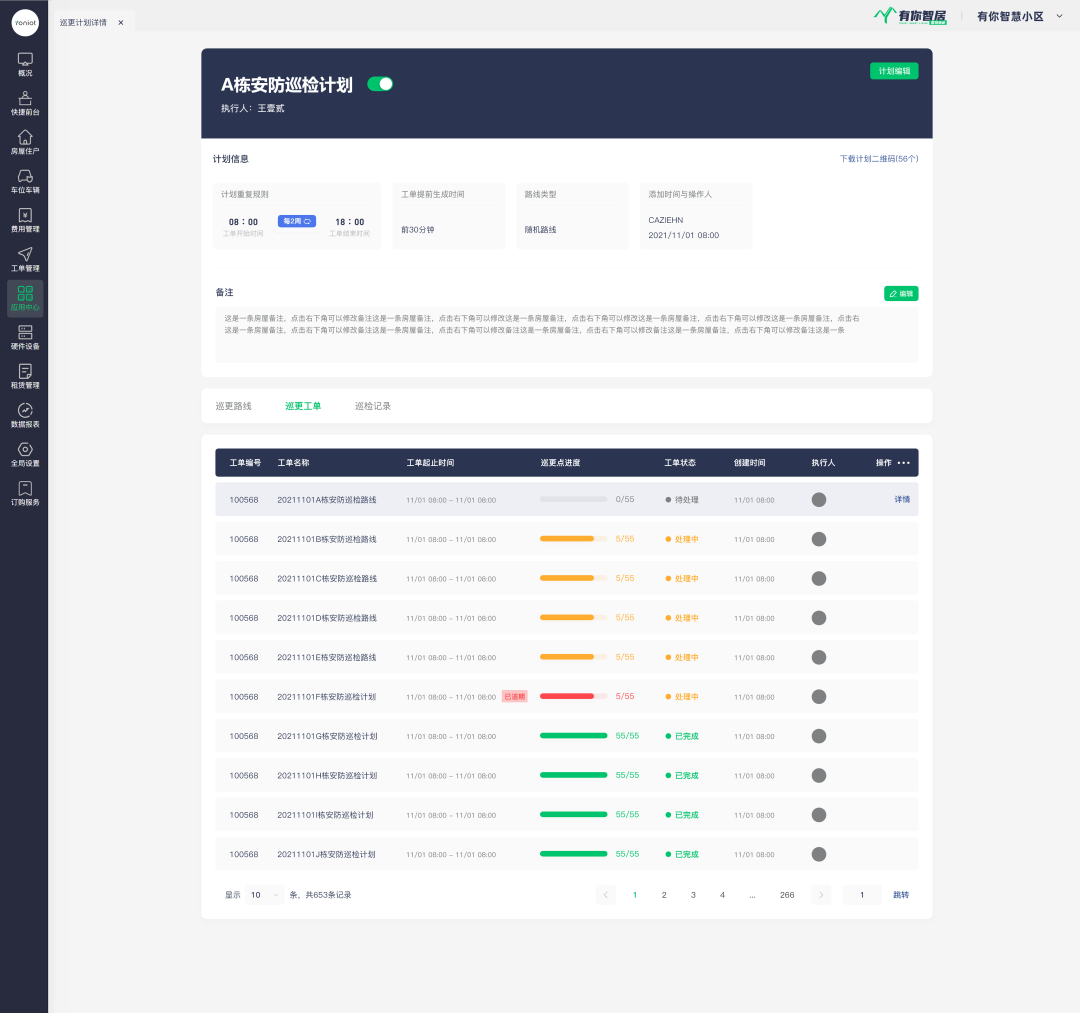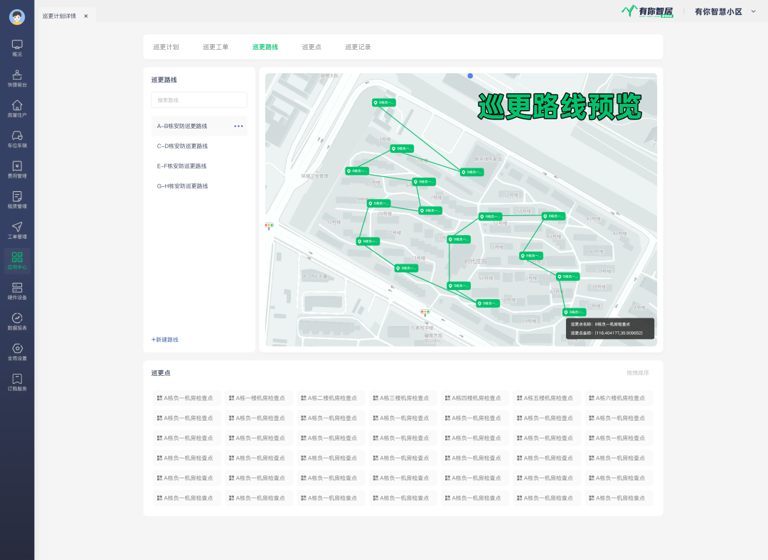 使用智慧物业管理系统的有你智居电子巡更功能,不仅可以在线上和线下提高巡逻效率,还可以为巡逻人员设置具体的任务,如打卡、拍照等。