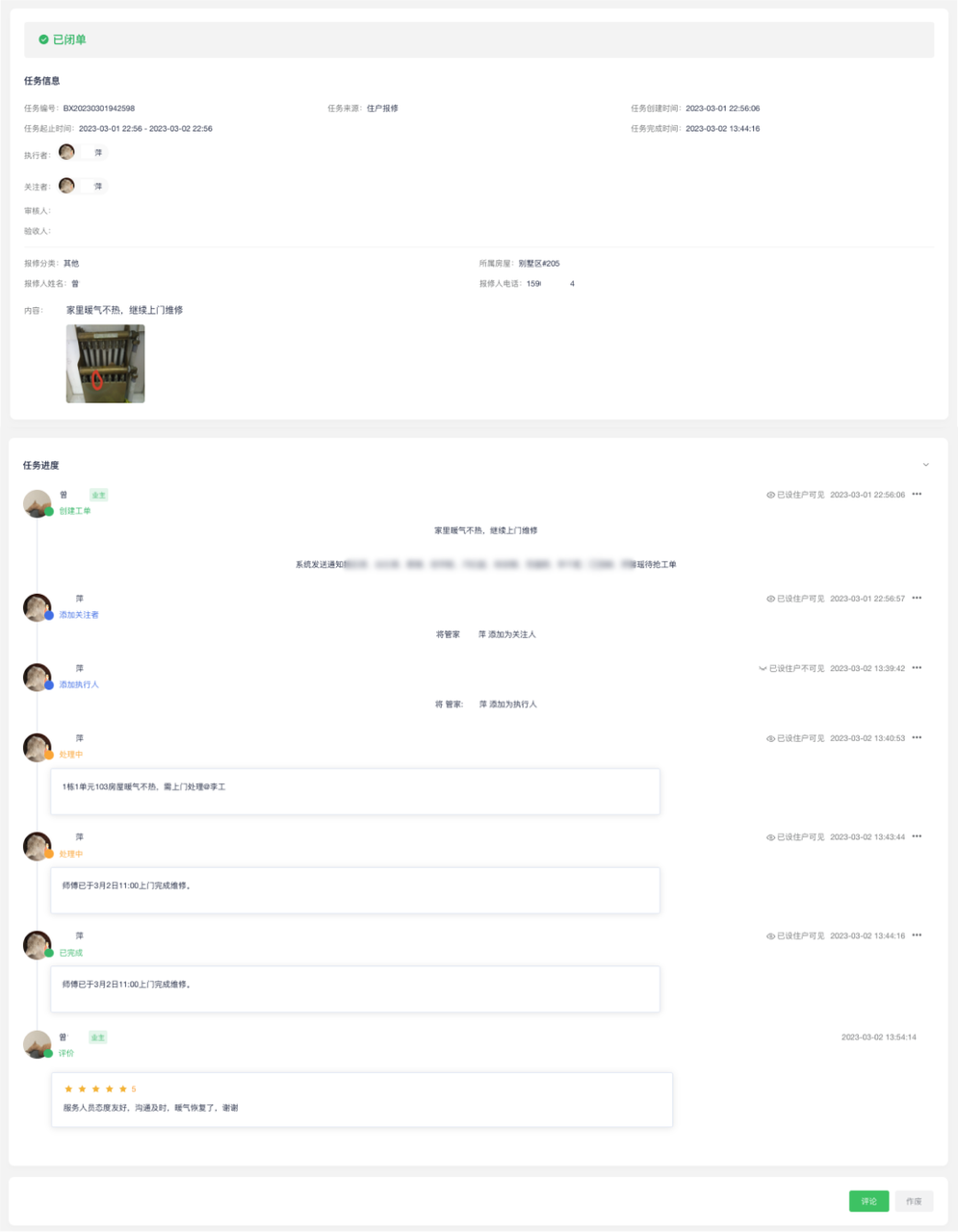 「物业电脑端」 报修工单详情页