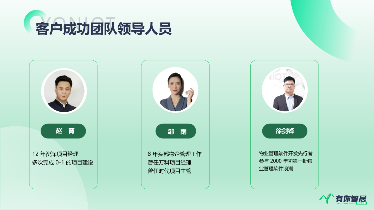 「有你智居」专设客户成功团队,为每位有你智居客户提供全生命周期的客户服务。