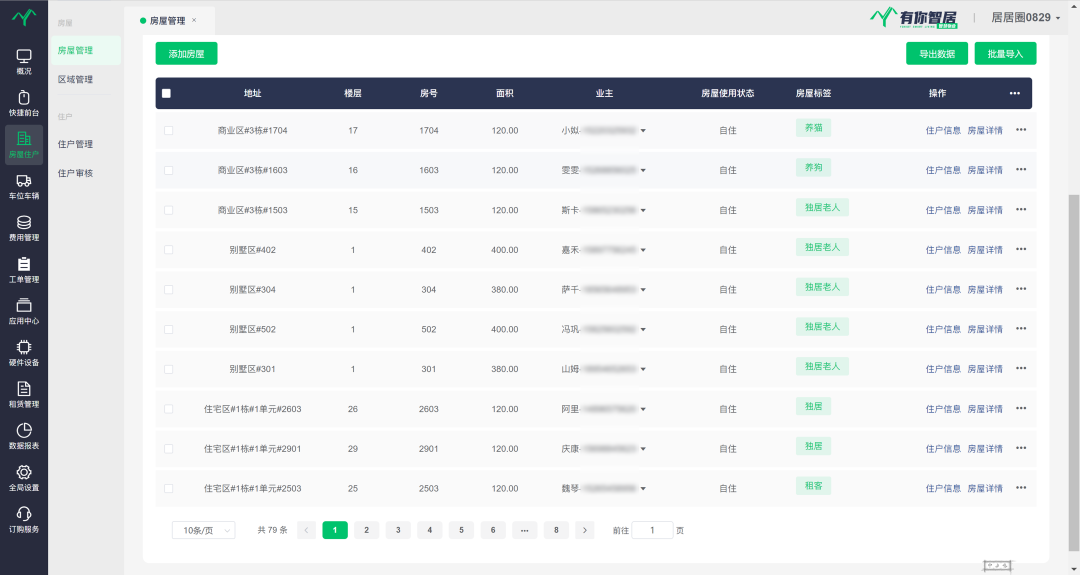“有你智居物业管理软件”通过标签化管理,帮助物业公司深入了解每位业主的特点和需求,实现个性化服务。这不仅提升了服务质量,还有助于塑造物业公司的品牌形象,增强其市场竞争力。