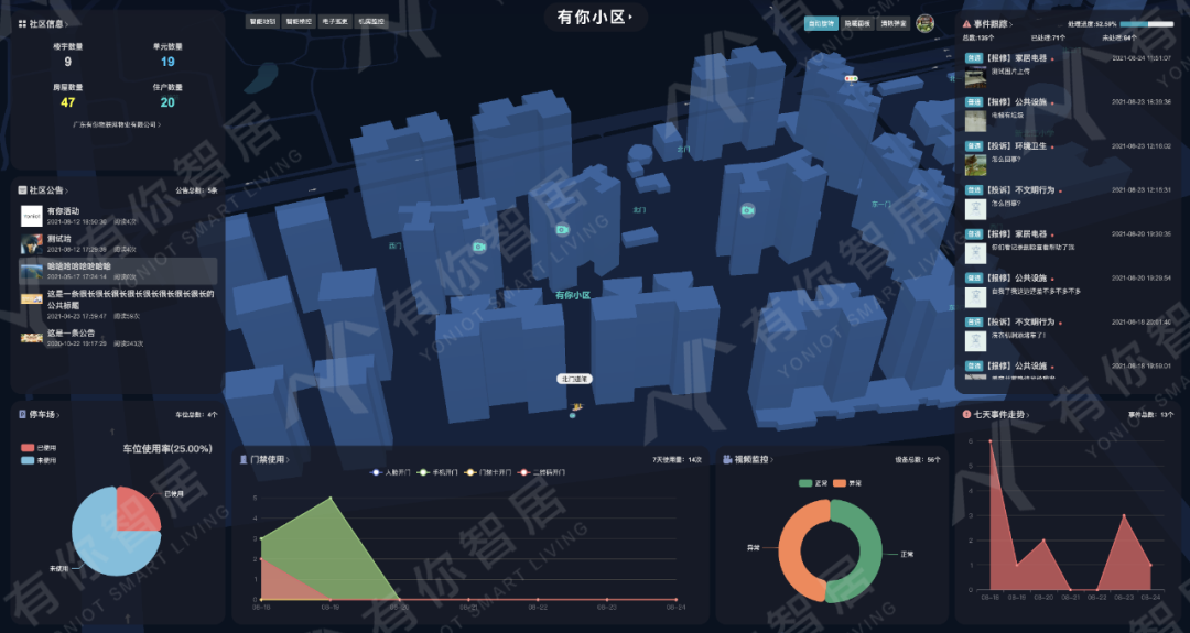 有你智居物业管理软件利用最新的互联网技术,为物业服务质量、资源消耗和团队绩效提供了详细的数据分析。多种端口,如“有你智居小程序”、“有你物管小程序”,实现了多端的协同工作。其与智能设备的完美整合,为社区居民提供了一个更加安全、便捷的居住环境。
