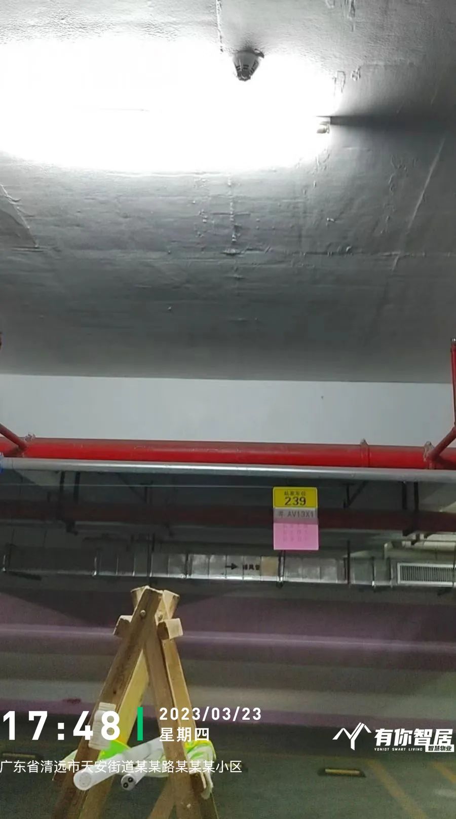 了解具体情况后,通过实地观察,发现是灯泡坏了,我立即拍摄了这个灯泡损坏的照片,并备注:需要采购灯泡等信息,上传到有你智居智慧物业系统并做了待处理跟进。