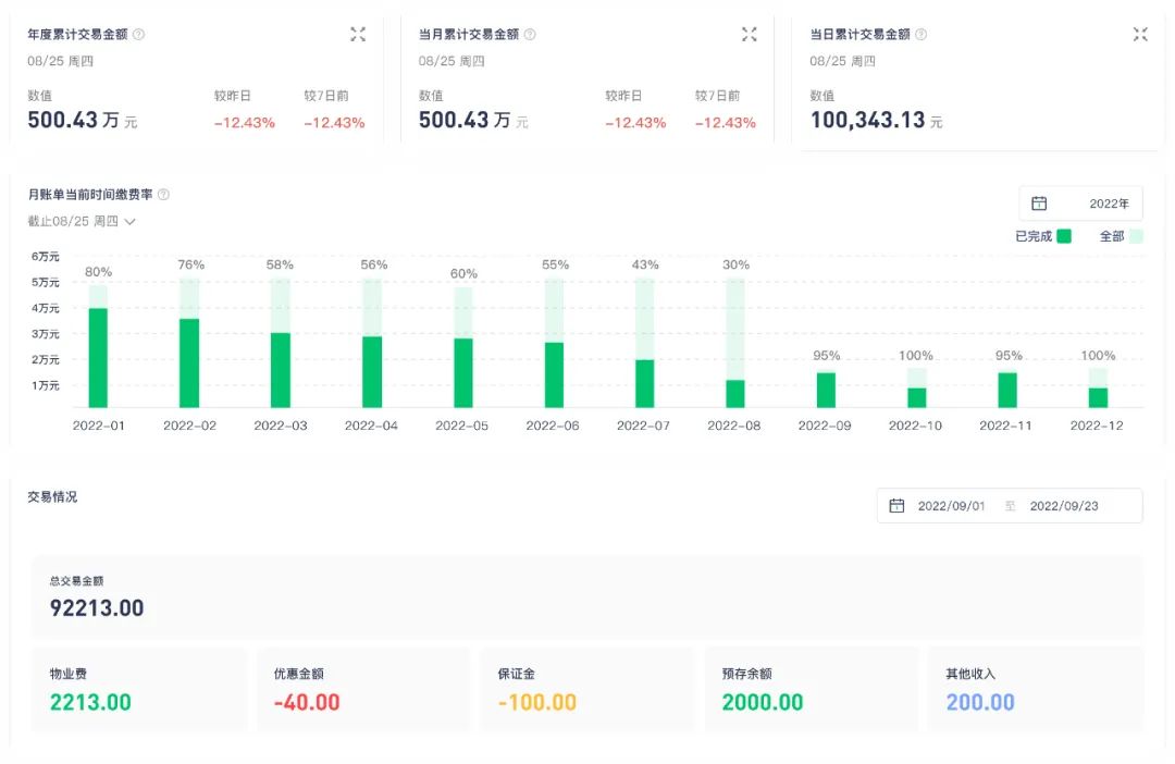 公司老板、物业管理者、物业经理/主管小区财务运营状况的各类数据指标和统计图表,可以更加深入地了解物业运营状况。了解物业企业经济状况,发现费用问题,优化费用结构,提高财务效益。