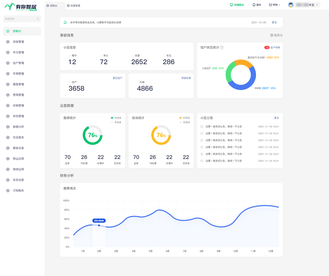 有你智居智慧物业系统SaaS是一款致力于提升物业管理效率、持续给合作物业提供专属服务、改善业主生活体验的智慧物业管理软件。