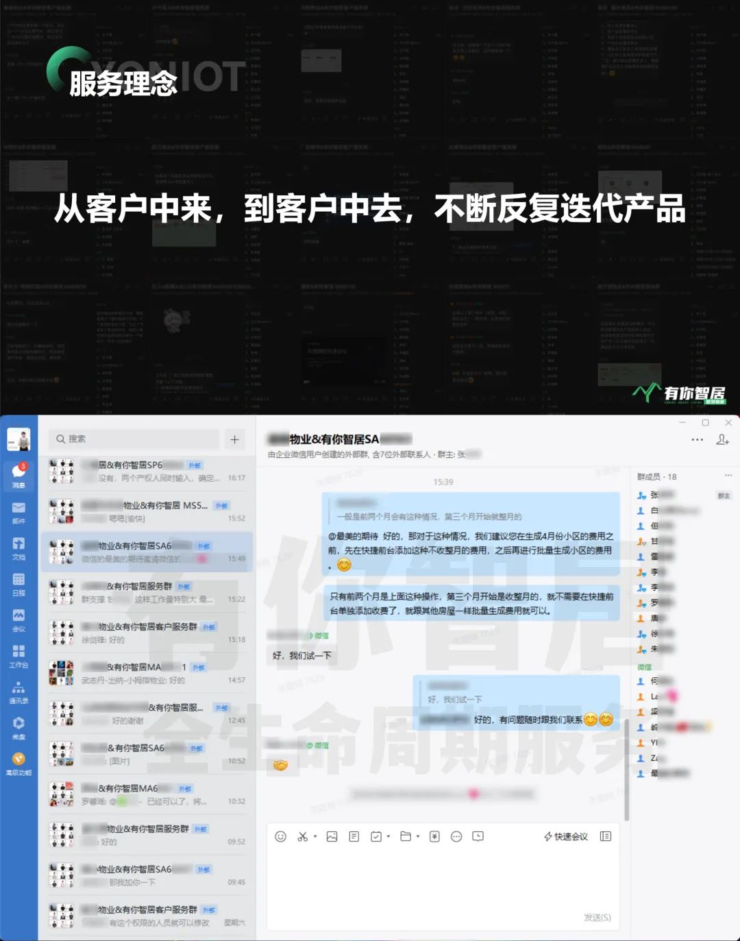 通过健全完善的服务体系,为每位有你智居客户提供全生命周期的客户服务,帮助客户通过有你智居物业SaaS软件解决管理痛点,获得增值。