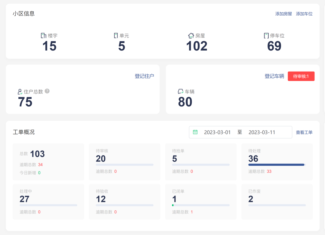 智慧物业管理系统可以收集和整理客户服务数据,包括报修、咨询、投诉、工单等多个方面的数据。