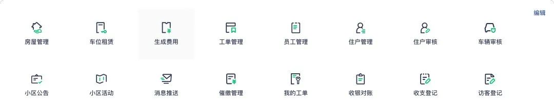 2️⃣物业人根据自己的操作习惯/小区实际情况对功能菜单进行个性化调整,将常用的功能模块置于更突出的位置,方便快速访问。